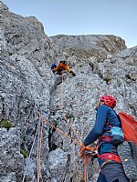 V letu 2025 smo po nekajletnem premoru PAKovci znova razpisali izobraževanje na področju plezanja v visokih stenah, gorah. Imenovali smo ga šola večraztežajnih smeri, saj se to ime vse bolj uveljavlja na sivem polju med športnim plezanjem in alpinizmom – torej tam nekje vmes. Večina ljudi si danes, v časih hitrega življenja, želi predvsem užitkarskega plezanja visoko nad tlemi, ki ne predstavlja nujno (naj)večje nevarnosti in tveganja. Kar je zelo racionalno in povsem sprejemljivo ter razumljivo. Smo pa tekom šolanja spoznali, da je tovrstnih poligonov doživljanja »varne sreče« v naši bližini relativno malo. Ko enkrat zaidemo v Alpe, nam narava sama po sebi postavi pogoje – in sooči z nevarnostmi ter tveganji, ki jih to okolje ponuja. Zato se v gore (hoditi ali plezati) odpravimo le ustrezno usposobljeni – brez nadaljnjega.