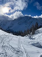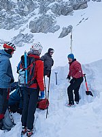 Nedeljsko turo na Tursko goro skozi Turski žleb smo začinili s plazovno delavnico – pogovor o plazovih in reševanju iz njih pa seveda praktični prikaz, vaja. Zaradi spremenjenih razmer, ponoči se je namreč konkretno ohladilo, smo že zjutraj preizkusili dereze, te pa so prav prišle tudi na najstrmejših odsekih ture. Znova smo na terenu oddelali 8-urni šiht, vikend pa zaključili z analizo v Lučah.