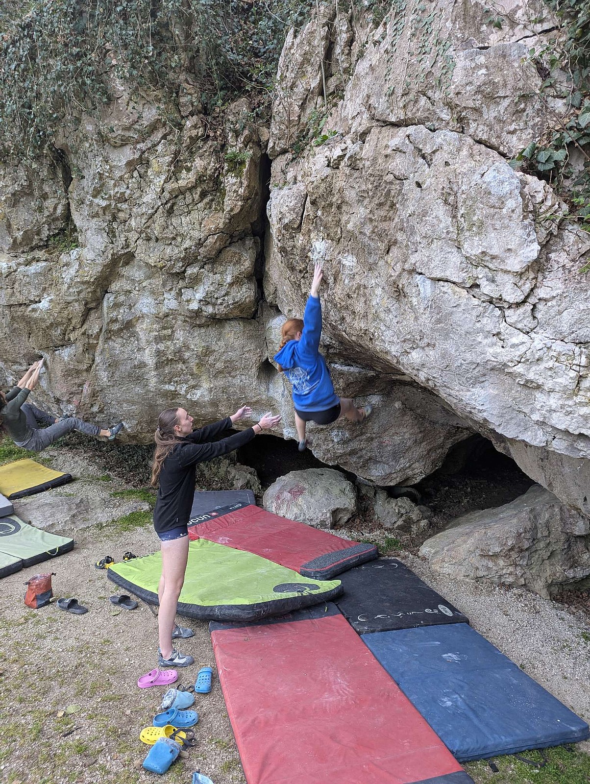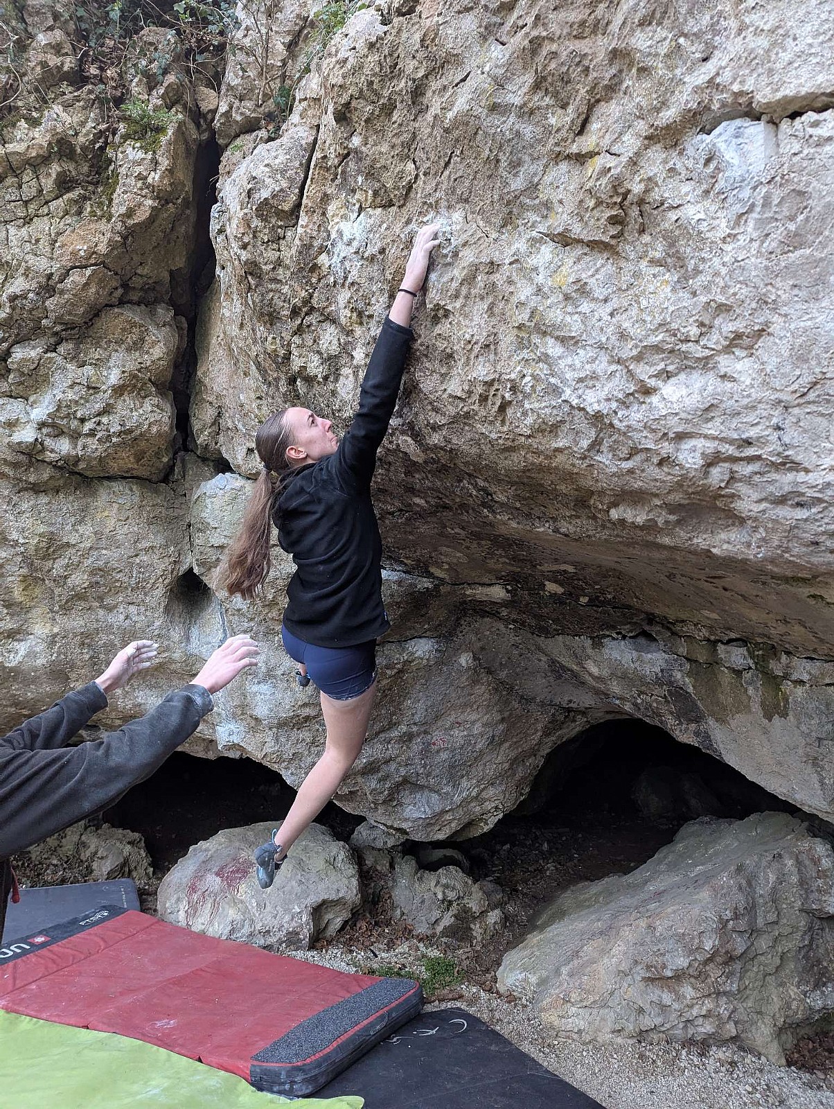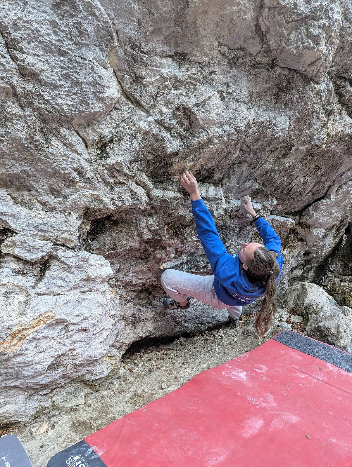 Mesec smo začeli podobno kot se je februar končal, z obiskom Kamniške Bistrice, na sporedu pa so bili obračuni z neizpolnjenimi projekti. Tokrat je bila zvezda dneva Katja Mešiček, ki je brez večjih težav zaključila projekt Norik, in je tako preplezala svoj prvi 7B balvan! Poleg tega pa je v istem dnevu dodala še 2 7Aja, ni kaj za dodati, čestitke! Ostali člani so predvsem projektirali. Od klasičnih udeležencov so bili na izletu še Bor, Miha in Vita, pridružila sta se pa tudi 2 mlajša plezalca, Ajda Sotelšek in Nejc Krulec. Plezala sta dobro in se cel dan spoznavala z malimi krimpi Kamniške Bistrice.