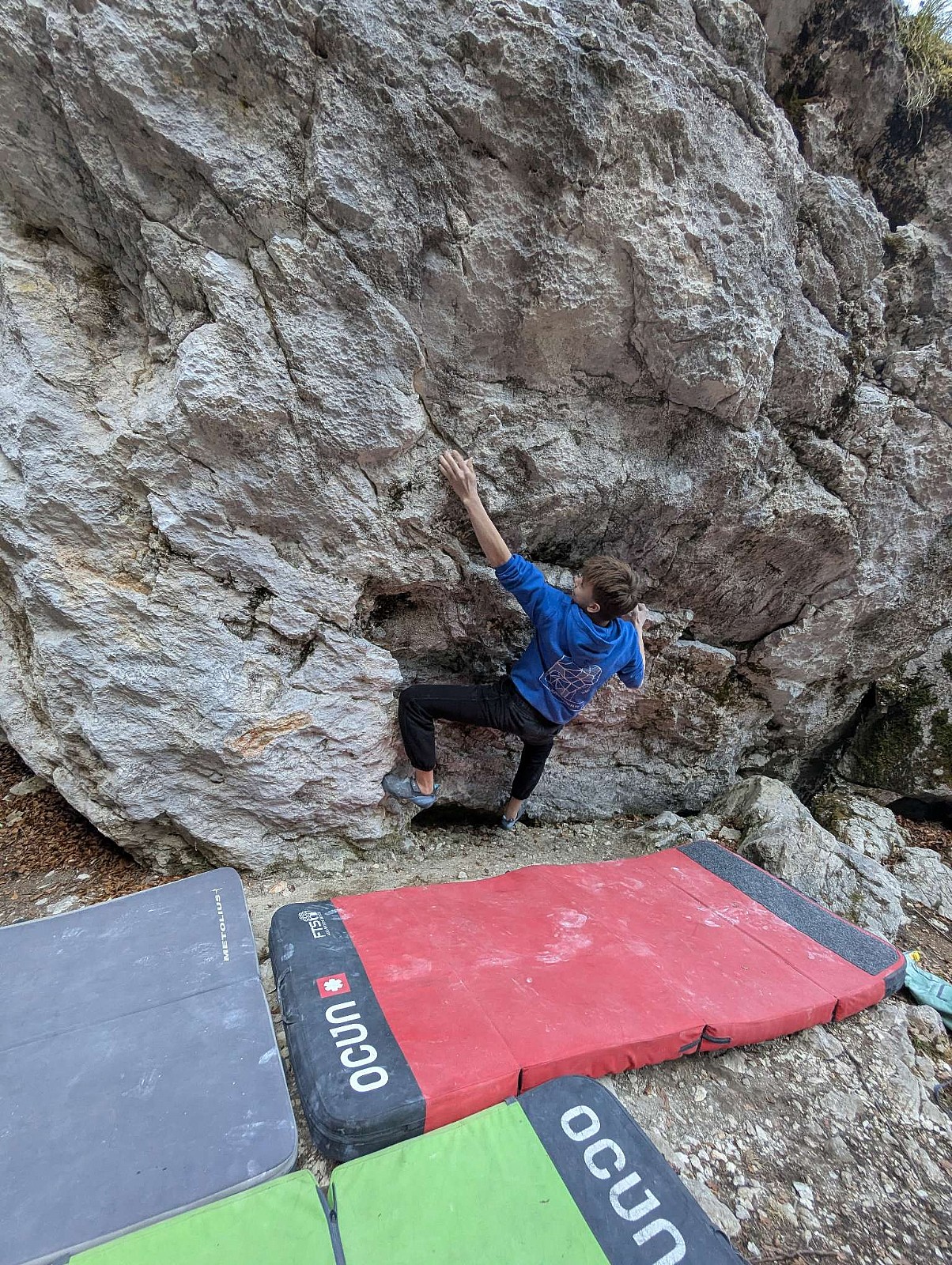 Kot je v navadi, so zjutraj so začeli najmlajši. Tokrat smo imeli v tej kategoriji samo 1 predstavnika, Žana Oštrbenka, ostala 2 mlajša tekmovalca še nabirata izkušnje predno se udeležita balvanske tekme. Žan je plezal dobro in bil nasmejan, tekmo je zakjučil na odličnem 5 mestu in nas vse presenetil.