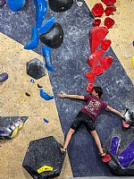 Za njimi so bili na sporedu starejši cicibani, tu smo imeli 3 fante. Imeli smo tudi enega debitanta, Matica Tušarja, ki je do sedaj treniral na rednih vadbah, z januarjem pa se je pridružil mlajši tekmovalni skupini. Vsi trije so plezali dobro, preplezali 5 balvanov, razlike pa so bile koliko con so osvojili, Liam Ledić 8, Žan Fiorelli 7, Matic pa 6. Tako da so bili tudi po rezultatih kar skupaj, Liam je bil 16., Žan 21. in Matic 23. Vredno je dodati, da sta imela Žan in Matic nekaj dodatnih težav, saj sodita med nižje tekmovalce, na katere pa postavljalci včasih malo pozabijo oz. je kakšen balvan za njih dosti težji.