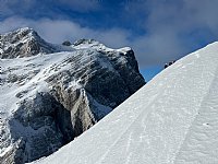 Zadali smo si dve lažji smerci, pa zato ob tem naredili čez 1600 višincev samo gor pa še dolgi, kačast sestop. Ja je še kar snega, kljub bolj mili zimi. Za začetek sezone kar dolga. Da ne govorim o muskelnfibru; danes, dva dni po turi, noge še vedno kot hlodi. Druagče super družba v idealnih plezalnih pogojih. Še več takih dni, čestitke sotrpinom!
