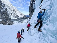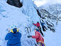 Tretja tura AŠ je bila namenjena ledu in plezanju slapov. Mudili smo se na in pod slapovi v Tamarju, kjer smo se najprej spoznali s tehniko plezanja z orodji, načini varovanja v lednih smereh nato pa splezali še dva, nekateri celo tri slapove. Z nami pa je bila tudi Roma, ki ga je s turnimi smučmi mahnila na Kotovo sedlo. Dobro smo izkoristili lepo nedeljo in se naplezali do sitega.