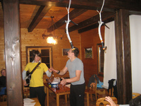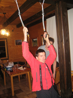 Zbrali smo se v prelepi idili; novozapadli sneg - koča na Grohatu. Okoli 20 pakovcev se nas je veselilo pozno v noč, no že proti jutru so obnemogli ta najbolj zagreti. Sprejem je bil res dobro organiziran. Pripravniki so se predstavili in povedali kratko zgodovino o svoji alpinistični karieri z besedo (Marko, Tonč in Edo), nova alpinista, Nejc in Rok, pa sta se predstavila ob slikah. Res dobro! Tudi "sprejemna" komisija si je zadala zanimivo nalogo: vsakega nadebudneža je v svoje vrste sprejela na edinstven način. Res vredu krst. Družba pa tudi pestra: od starosti pol leta do kar krepko čez petdeset, vsi pa čili in razpoložljivi.