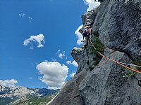 Na 2. akciji SMAR smo plezali v Dolomitih, natančneje nad dolino Zoldo v skupini vrhov Bosconero. 2 plezalna dneva, 2 smeri, zadnji dan žal slabo vreme. Vsekakor pa verjetno eden najlepših kotičkov Dolomitov - vsaj zaradi koče Casera Bosconero, ki je res cartig. Toplo priporočam!