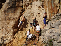 V petek sva po obilnem zajtrku kar zgodaj odšla v plezališče, saj sva želela pozno popoldne izkoristiti za uživanje ob morju. Odločila sva se, da ponoviva smeri, ki so nama res lepe in v njih uživava. Pozno popoldne se vseeno odločim, da bi poskusil zame novo smer Fire walker (6c+). Začetek ni bil težaven, vse je šlo super, dokler nisem zdrsnil na koncu detajla in je šel »onsajt« po gobe. Kljub padcu sem si smer pogledal potem do vrha in po krajši pavzi je v drugo šlo kot po maslu.