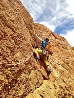 Plezanje Dolge Nemške smeri, ki sma jo spodaj povezala z Sinjim Slapom