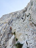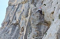 V petek sva po obilnem zajtrku kar zgodaj odšla v plezališče, saj sva želela pozno popoldne izkoristiti za uživanje ob morju. Odločila sva se, da ponoviva smeri, ki so nama res lepe in v njih uživava. Pozno popoldne se vseeno odločim, da bi poskusil zame novo smer Fire walker (6c+). Začetek ni bil težaven, vse je šlo super, dokler nisem zdrsnil na koncu detajla in je šel »onsajt« po gobe. Kljub padcu sem si smer pogledal potem do vrha in po krajši pavzi je v drugo šlo kot po maslu.