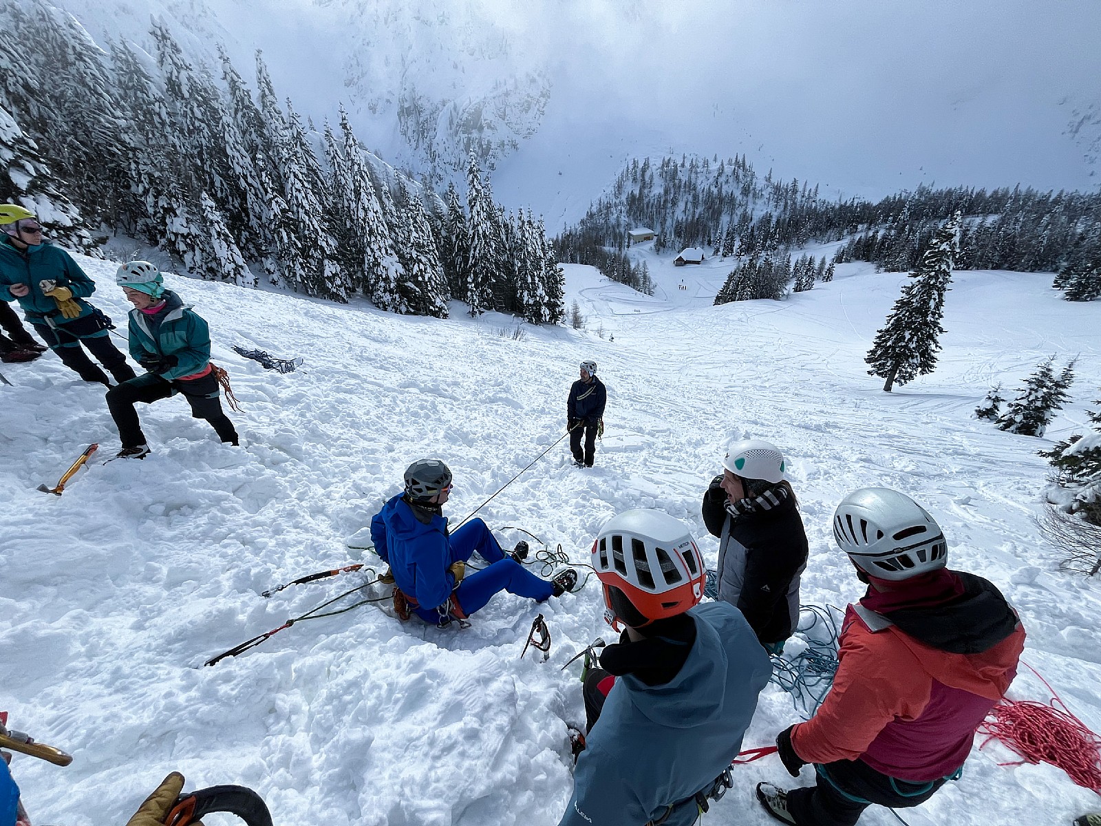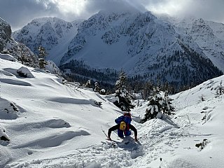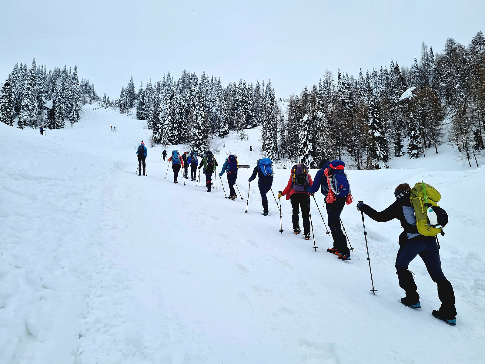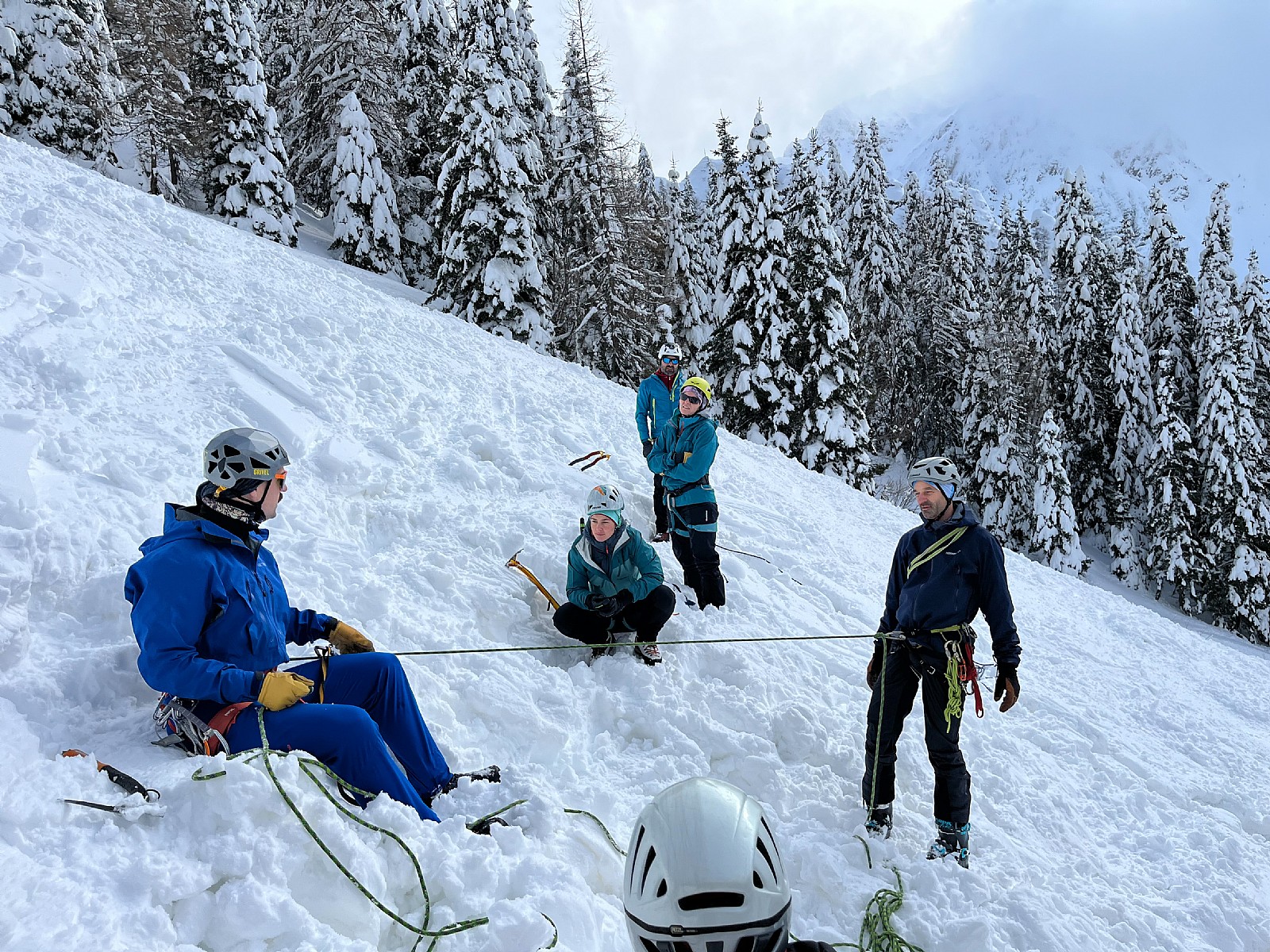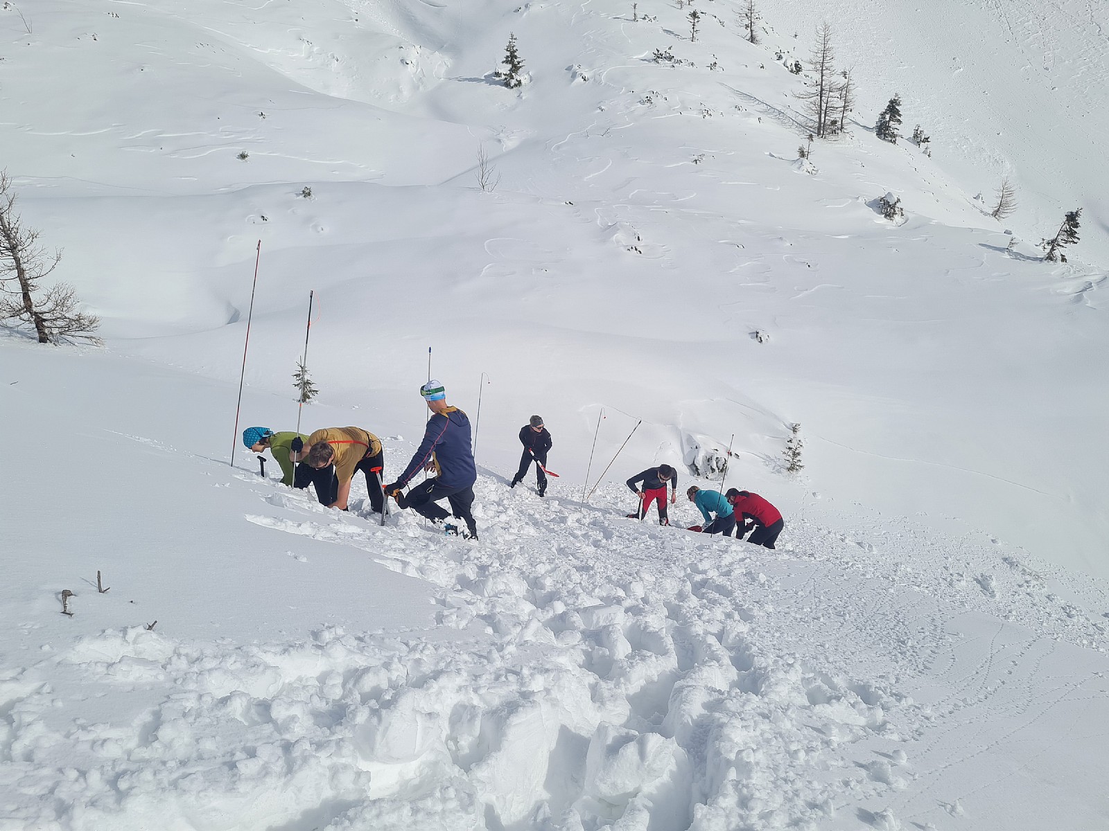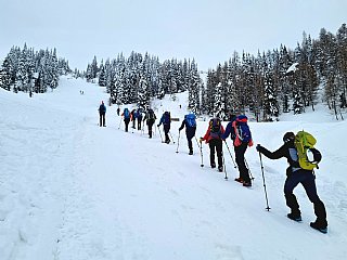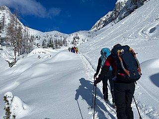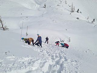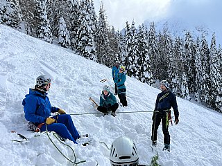 Druga tura zimskega dela AŠ se je odvila na Zelenici in okolici kjer smo se učili vrvnih manevrov v snegu in ponavljali veščine iz prejšnje ture - prerez snežne odeje, iskanje z lavinsko žolno kot tudi ustavljanje s cepinom.