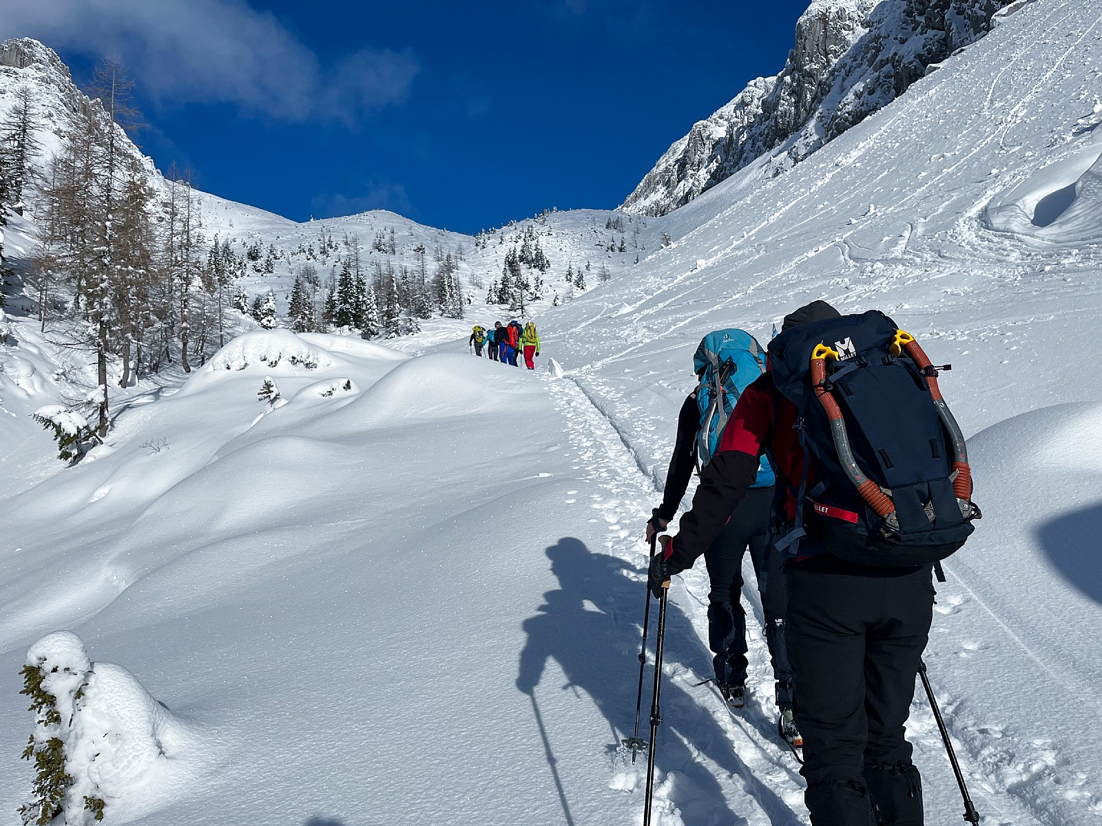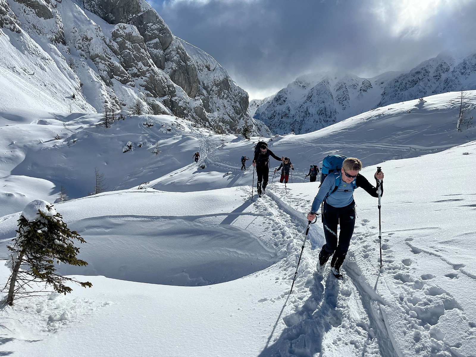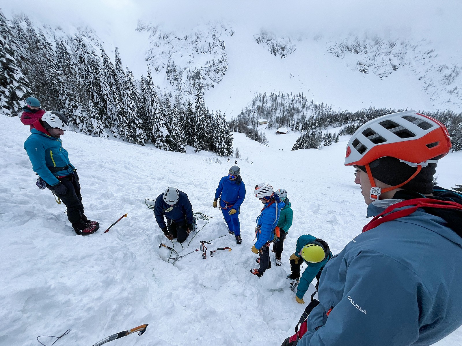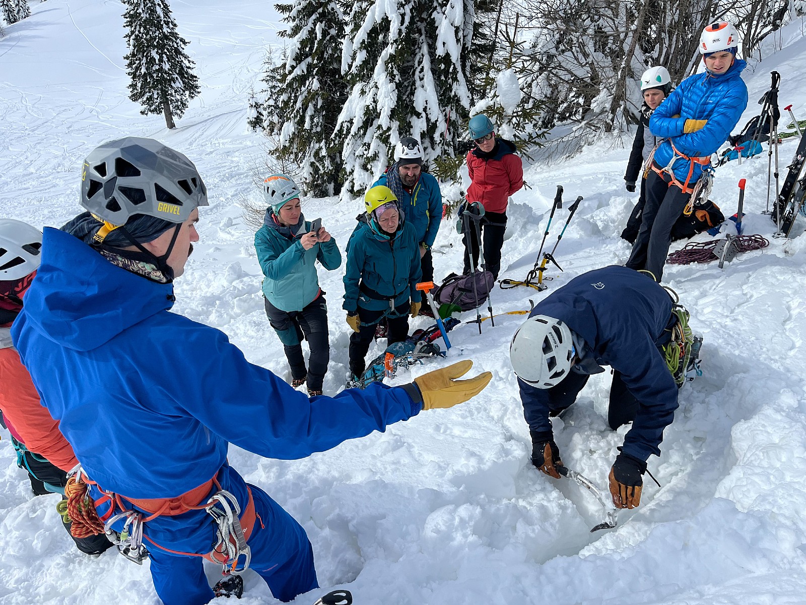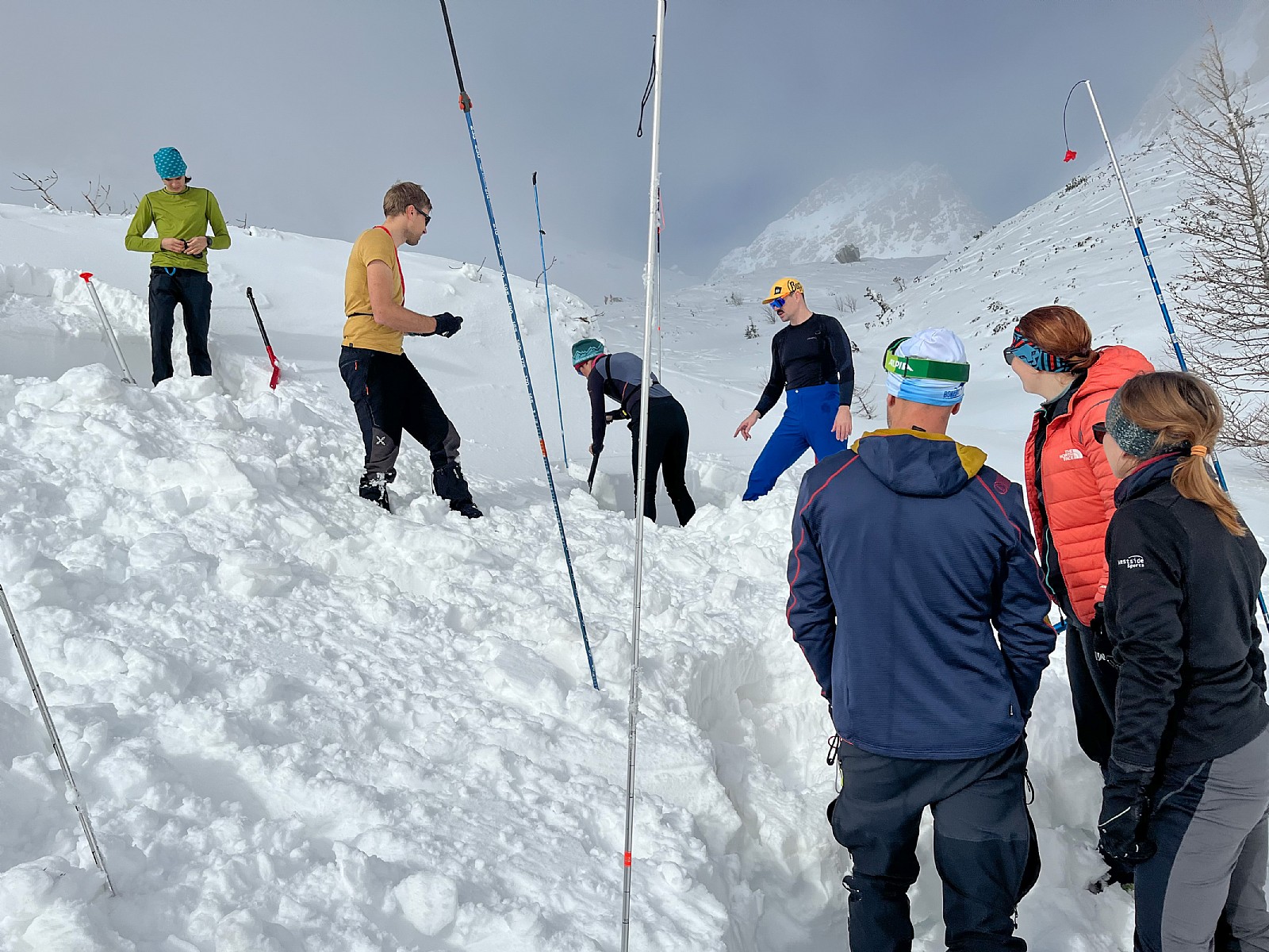 Druga tura zimskega dela AŠ se je odvila na Zelenici in okolici kjer smo se učili vrvnih manevrov v snegu in ponavljali veščine iz prejšnje ture - prerez snežne odeje, iskanje z lavinsko žolno kot tudi ustavljanje s cepinom.