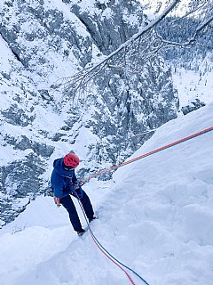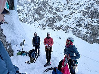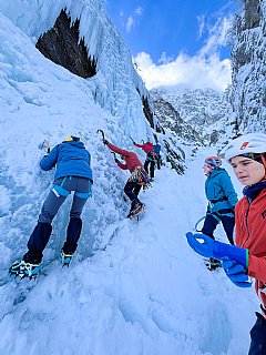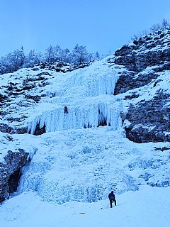Tretja tura AŠ je bila namenjena ledu in plezanju slapov. Mudili smo se na in pod slapovi v Tamarju, kjer smo se najprej spoznali s tehniko plezanja z orodji, načini varovanja v lednih smereh nato pa splezali še dva, nekateri celo tri slapove. Z nami pa je bila tudi Roma, ki ga je s turnimi smučmi mahnila na Kotovo sedlo. Dobro smo izkoristili lepo nedeljo in se naplezali do sitega.