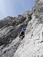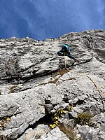 V soboto smo uspešno izpeljali skupno turo, nabrali nekaj novih izkušenj in uživali v dopoldanskem soncu. Namen ture je bil preizkus mladih pripravnikov v samostojnem plezanju v navezi in seveda prenosu znanja izkušenejših plezalcev na manj izkušene v relativno varnem okolju. Ker se je vreme popoldne sfižilo, smo s plezarijo predčasno zaključili, dobro vzdušje pa se je nadaljevalo tudi v odlični lokalni oštariji. Bravo naši pripravniki za opravljene vzpone in pa Mihi, ki ga je na vrhu svoje prve VI čakal tudi krst. Ker mi slik niste poslali, prilagam samo moje: