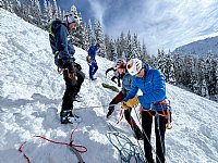 Druga tura zimskega dela AŠ se je odvila na Zelenici in okolici kjer smo se učili vrvnih manevrov v snegu in ponavljali veščine iz prejšnje ture - prerez snežne odeje, iskanje z lavinsko žolno kot tudi ustavljanje s cepinom.