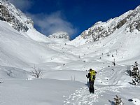 V soboto se je skupina treh turnih smučarjev znašla na potepu mimo Zelenice do Vrtače. PAK sta zastopala Igor in Arno, pravita, da so razmere dobre, na sončnih legah je že skorja, v senci je pa sneg še suh. Po grapi je kar precej vetra, ampak le ta je poskrbel da so bile razmere za smučat super, ker odlaga pršič na kompaktno podlago. Fotke so čudovite, še več takšnih.
