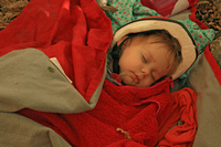 Podaljšan vikend, zahvala gre Mariji za praznik, in poceni kamp v Trenti v sklopu družinskega vikenda AO Rašica nas je spet povabilo na potep. Izpred Krškega po dolgem klepetu sploh kam bi šli, smo se le odpeljali proti Italiji, čez Predel do Trente. Hotelski resort šotorov smo postavili zraven družine Zorko. V soboto smo se po obilnem zajtrku odpravila na Bavški Grintavec (2347 m) iz doline Bavšice, pot je lepa počasi vzpenjajoča pohodna pot vendar ob poti »težijo« milijoni kopriv in robidnic. Nedelja je bila za nekatere aktivna, za druge bolj ležerno. Štirje z lenobo in hiperaktivna pasja spremljevalka smo se odpravili kar z celotnim AO Rašica na otroški pohod do Čela. Cerjak in Iggy Pop pa sta »švicala« še za nas štiri ko sta gonila iz Robiča pri Kobaridu na Kobariški Stol (1673m) in preko grebena v Kobarid. Ponedeljek se je začel zelo pestro že zgodaj, ko se je mladenič Cerjak odločil, da bi jedel palačinke. »Pozdravljeni. Sem Gregor Cerjak in to je kuharska oddaja na prostem, danes se v živo javljam iz Trente. Za vas bom danes pekel najlažjo sladico in zajtrk, palačinke«. Vse je izgledalo kot da je mojster palačink, pa je kmalu sledilo vprašanje »Maja, kok se da moke not?« in že je bilo smeha preden smo napekli vse palačinke. Obiskali smo med drugim tudi plezališče Kal - Koritnica. Na koncu dneva se je Cerko namakal v ledeno mrzli vodi – 12 stopinj je kazalo na števcu, medtem ko smo ostali upali namočiti samo gležnje. Domov še nikogar ni vleklo, vendar smo se v poznih popoldanskih urah le napokali v avto, odpeljali do Komende, kjer smo pri Gorjanu jedli odlične pice in naprej proti domu.