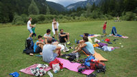 Vremenska napoved je bila še kar slaba za naslednje dni, ampak, kot pravijo naši jugo bratje: "glupe i hrabre prati sreča". Črni oblaki so se kopičili vsak dan, a so se tudi kmalu razkadili. Pravzaprav smo imeli vse dni idealne razmere za plezanje, kolesarjenje, veslanje, pohodništvo, tako da vam je lahko vsem prav žal, da niste prišli. V sredo so se nam pridružili še Sotelški (Peter, Tanja, Ajda in Andraž), družbo so nam delali še Štajerci (AŠ s kar 27 tečajniki!). Super, super je bilo!