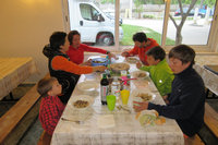 Tretji dan so se nam pridružili še Sotelški (Peter, Tanja, Ajda in Andraž), tako da smo iz pohodništva prešli še na plezanje in kolesarjenje. Vremenska napoved je bila še kar slaba, vreme pa še kar super lepo. Izkoristili smo ga do konca. Pravi navdih so nam bili tečajniki alpinistične šole iz APD Kozjak Maribor. Inštruktorji so jih terali, da je bilo veselje in blazinice prstov krvave. Če niso plezali, so pa vadili manevre. Tako so bili utrujeni, da so še pir komaj nagibali. Nezaslišano! Presenetili so nas tudi Grmovški (Tanja, Andrej, Tara) in ekipa je bila popolna. Da ne omenjam rojstnega dneva od Matije. 30. aprila ga ima, kar pomeni, da ga še nikoli ni praznoval doma. Bad luck, sine!