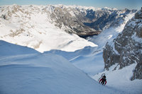 Zadali smo si dve lažji smerci, pa zato ob tem naredili čez 1600 višincev samo gor pa še dolgi, kačast sestop. Ja je še kar snega, kljub bolj mili zimi. Za začetek sezone kar dolga. Da ne govorim o muskelnfibru; danes, dva dni po turi, noge še vedno kot hlodi. Druagče super družba v idealnih plezalnih pogojih. Še več takih dni, čestitke sotrpinom!