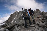Sprejem "mladine" v alpinistične vrste, dva alpinista, trije pripravniki.