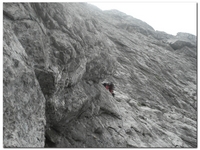 Plezanje Dolge Nemške smeri, ki sma jo spodaj povezala z Sinjim Slapom