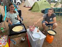 Voglarjev žar nam je ženskicam že precej domač. Uspelo nam je narediti žerjavico za vseh 7 kg meseka. Mljask šobska solatka in Vegee pohanjčki - fantastični z žara, vprašajte sevničanke. Pijača za obliznit in posladek iz Jercinih rok.