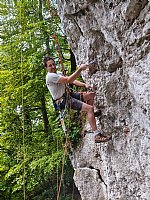 Prvi dan smo plezali v sektorju Pod Ojstrico. Preplezali smo 10 smeri, večino prosto na pogled ali »flash« , z ocenami od 5b do 6c+. Mladi plezalci so bili s preplezanim zelo zadovoljni, po njihovo so bile nekatere smeri »carske«.
