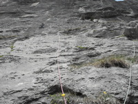 Prvi dan smo plezali v sektorju Pod Ojstrico. Preplezali smo 10 smeri, večino prosto na pogled ali »flash« , z ocenami od 5b do 6c+. Mladi plezalci so bili s preplezanim zelo zadovoljni, po njihovo so bile nekatere smeri »carske«.