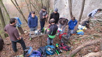 V soboto, 10.11.2018, smo se ob 9:00 uri zbrali plezalci-delavci in ljubitelji Armeškega: Nejc P., Nejc T., Pero in Andraž, Sandra, Igor, Cerko, Arno, Mato, Bine in Bojan. Martina, Lena in Gorazd so opoldne poskrbeli, da so imeli delo tudi naši zobje, in sicer z dobrotami iz kmetije Lapuh. S Perotom sva sva se lotila "sanacije" J strani stene, ostali pa so se posvetili utrjevanju poti in mize. Bili smo zelo uspešni in dobro smo izkoristili ta topel dan. Nekaj nas je to še potrdilo na domačiji Dular ob enemu zadnjih pečenj kostanja.