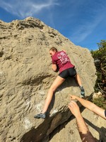 V nedeljo sta se preizkusila v balvanih Urška Sagernik in Aljaž Motoh. Plezala sta v osmih balvanskih problemih po izrazitih previsnih razčlembah ali pa v ploščah skorajda brez grifov.