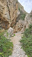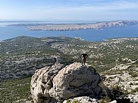 Za povratek se odločiva izbrati pot ob obali, ki je malo slabše označena. Pot se nadaljuje s kratkimi vzponi in spusti, vsak spust pa nas pripelje do nove samotne plaže. Nekatere so široke, nekatere ozke, peščene, spet druge kamnite in težje dostopne, vse pa so mamljive za hiter skok v morje. Seveda ravno pravšnjo temperaturo morja tudi izkoristiva in se osveživa v hladnem morju. Poleg skrivnostnih plažic naju ob poti spremlja pogled na nenaseljen otok Prvić. Tu in tam je potrebno pogledat kam stopiš, saj je Iris skoraj pohodila kačo, ki se je na srečo bolj ustrašila kot Iris in kot rešitev pametno izbrala pobeg namesto ugriza. Še sreča. Nisem še videl kače, ki bi tako urno skočila med skale v bližini. Proti koncu se pot ob obali združi s spustom čez kanjon Verženica na lepi, a ne več tako samotni plaži, za katero se nahaja borov gozdiček. Od tu naprej je pot bolj uhojena in mestoma že zelo zlizana, saj nas mimo plezališča Buncoluka pripelje do istoimenskega kampa. Sledi še zadnje presenečenje – res strm vzpon ob kampu in nato še povratek do parkirišča nekje v Baški.