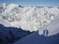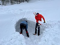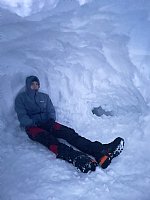 Spet ena prava klubska skupna tura izobraževalnega značaja. V dveh dnevih smo obdelali vse, kar se obdelati da. Prvi dan je bil sončen in že kar kičast, drugi dan vetrovno, megleno in mrzlo z obilico sodre, a dobra volja ni popustila niti za trenutek. Vseh PAKovcev nas je bilo kar 17, splezali smo Centralno grapo na Begunjščico, ponovili prerez snežne odeje in stopnjo plazenja po Norveški metodi, nato še varovanje v snežni strmini in na vrhu še izdelavo sidrišča v snegu (prvič z dvema cepinoma in drugič s snežno gobo). Pozno popoldne smo iskali zasute v plazu. Zelo temeljito smo obdelali delovanje lavinskih žoln, postopke določanja lokacije zasutih, kopali manjše in velike luknje, sondirali in uspešno rešili vse ponesrečence. Sledila je obilna večerja v koči in prijeten večer s pesmijo ob kitari. Drugi dan po zajtrku smo se zagnali proti bližnjemu Trianglu. V vetru, megli in nekakšni sodri smo bili hitro na vrhu, sledilo je obvezno fotkanje, na poti navzdol pa smo preizkusili še zaustavljanje s cepinom pri zdrsu ali padcu v strmini. Seveda so nam Matej, Peter in Sandra zadeve prej razložili v piko, še vedno pa rajši tega ne bi delali zares. Za nami sta dva dneva, ki ju ne bomo nikoli pozabili, pa še veliko smo se naučili.