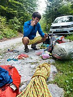 Spet mi je pisal Grma. Jaz dela čez glavo, on dve mamljivi ponudbi, med katerima je Ulina seveda izstopala. Ni bilo kaj. Zapregel sem na polno, tipkal dva dni skupaj in ... je zneslo. V četrtek zvečer sva se dobila v Ljubljani in se odpeljala v Vrata. Sledilo je zlaganje in sortiranje robe, zaskrbljenost nad hudo vlago in gledanje v meglo. Budilko sva nastavila na 4. zjutraj ...
