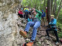 Začeli smo z alpinistično šolo in delo smo zastavili - šolsko. Prva tura je bila posvečena odkrivanju skritih kotičkov Bohorja in spoznavanju skupine - teambuilding:) Fino je blo ...