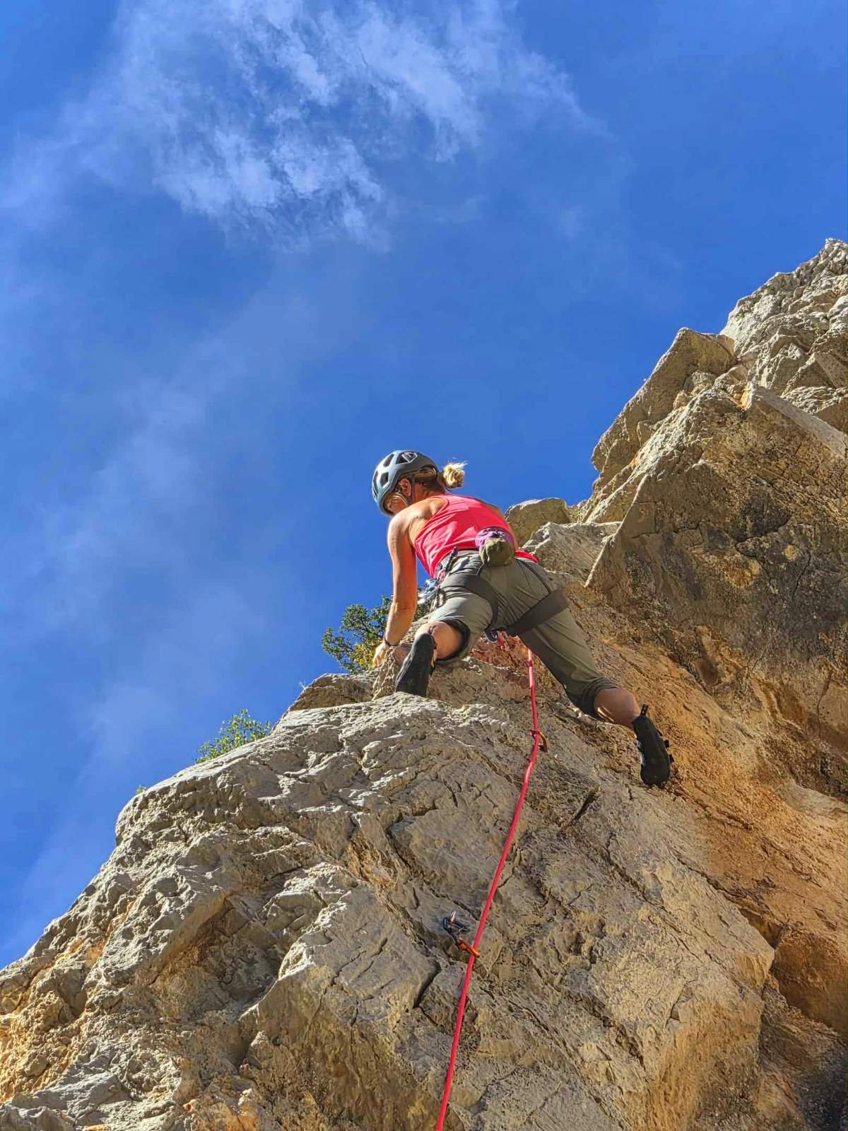Torek in sreda plezanje, do 6b+ mi uspe, ni glih. Že na začetku sva se odločili za 2+1, dva dni plezanja, en dan restič.