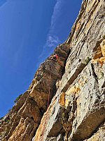 Že prvi dan plezanja splezam smer z oceno 6c. Se mi kar smeji. Tudi v nedeljo mi uspe 6c in dve 6b+, sicer noben presežek, ampak je fajn občutek. Tako si izberem kar nov pregovor: ena 6c na dan, odžene zdravnika stran.